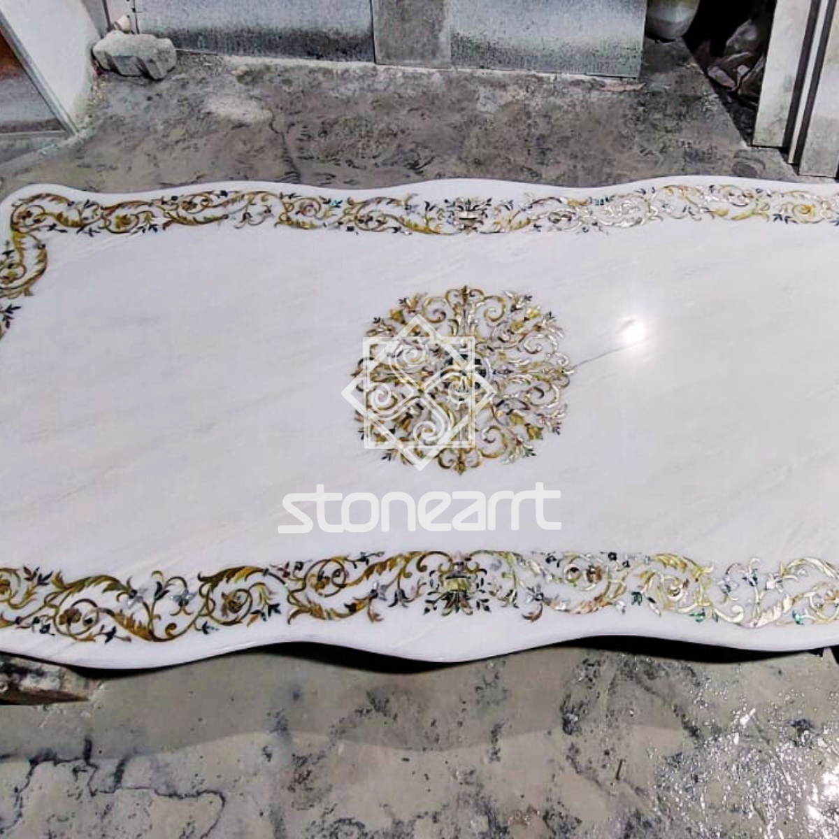 At Stonearrts, our hand inlays in marble are a symphony of tradition, craftsmanship, and luxury. Painstakingly crafted by seasoned artisans, each inlay is a timeless reflection of Mughal-inspired artistry, using semi-precious stones like lapis lazuli, malachite, and mother of pearl. The delicate process involves hand-chiseling intricate patterns into pristine marble surfaces, into which colorful stones are carefully placed to form elaborate floral, geometric, or traditional motifs.